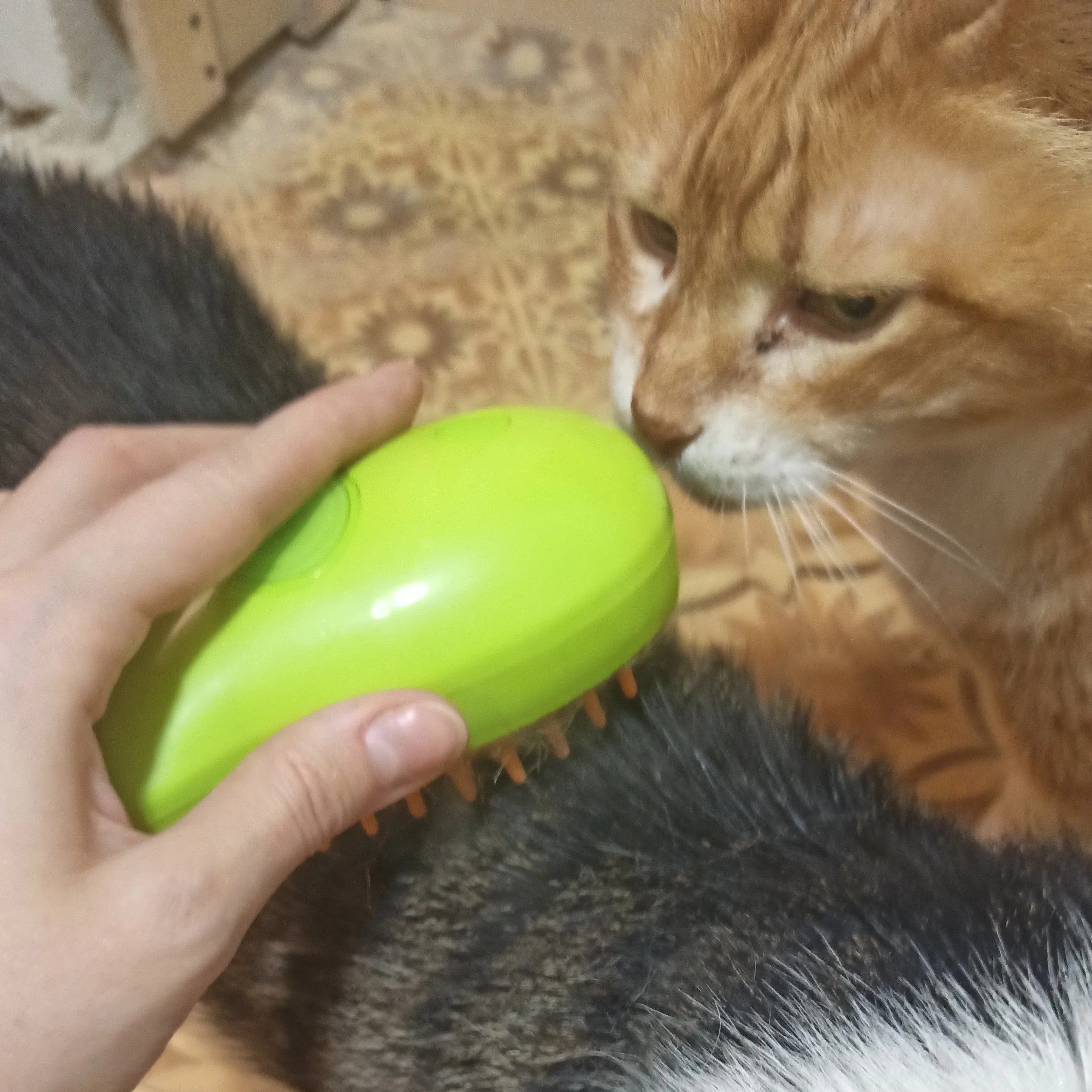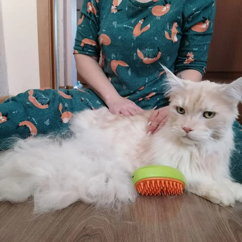 "All 3 of our cats LOVE this brush. The fine mist keeps them from getting shocked from static build up and helps them feel sleek and clean when done. It really does remove a lot of shed hair with very little effort. The rubber bristles are soft and comfortable while gripping all the shed hair and removing it. Works great on our short hair and long haired cats; even the Maine coon’s dense long fur! Also love that this is rechargeable. It came charged, and still has charge after grooming all 3 cats."