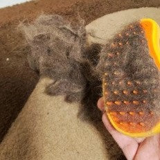 "LaLa has a coat unlike any other. 3 layers. Hair & fur & wool! It knots easily on her joints. Get those out and it hurts her. So, since she is a rescue, it breaks the trust process. Plus she sheds & itches. And she's smart, so if I open the brush drawer, she's gone. So, lovely cat with HUGE grooming issues. Enter this "gadget" & my low expectations. 30 seconds in, and I call my husband to see the miracle. I am removing tons of hair & she's loving it. It works everywhere on her!! Rarely does a purchase do EXACTLY what it promises. And more!! I will buy two more to try on my German Shepherd!" - Caroline P. ⭐⭐⭐⭐⭐