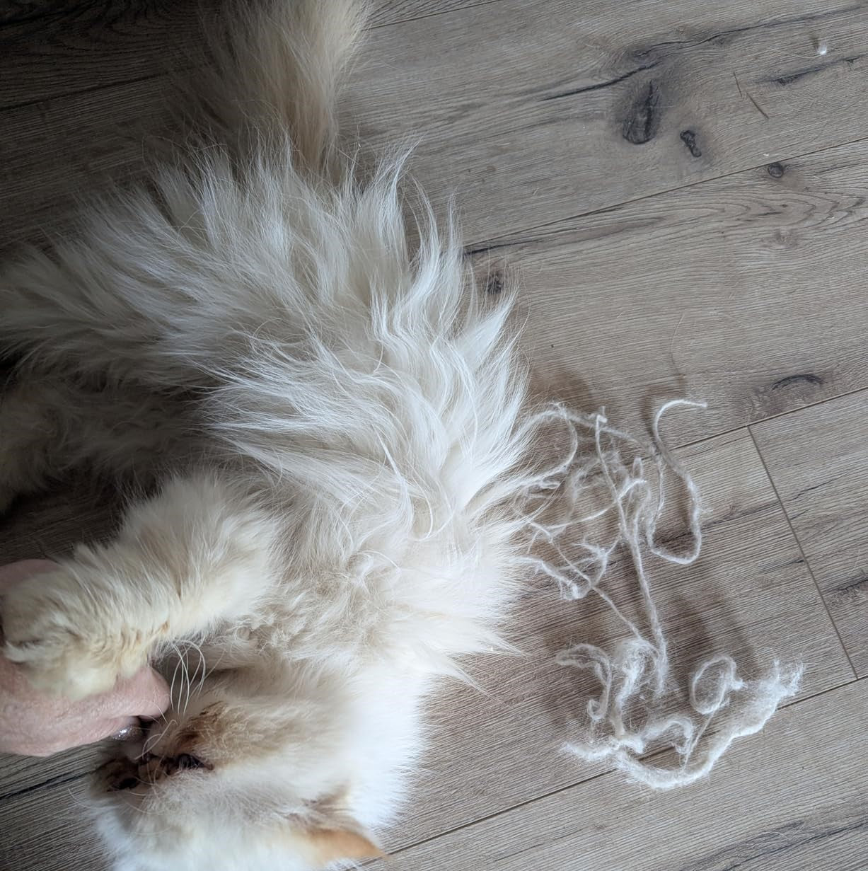 "I seldom leave reviews for products I have purchased -- either good or bad. But, I have been so impressed with this I thought others should know how great this pet hair removal mitt is. We have two Ragdoll cats with long mostly white hair. This makes getting it off bed spreads, chairs, and ottomans a breeze. It is a pleasure to buy something that actually does what it advertised to do!"
